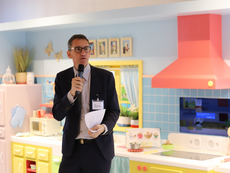 La visite a commencé avec un espace dédié aux plus jeunes baptisé Miam Miam. Vous en aviez rêvé enfant ? La Cité de la Gastronomie l'a fait pour vous : une dînette géante. David Kimelfeld et ses équipes se sont rués dessus pour ouvrir tous les tiroirs et le frigo. "C'est genré non ?", blaguait le président de la Métropole, qui déambulait ensuite dans le reste de l'espace ludique.