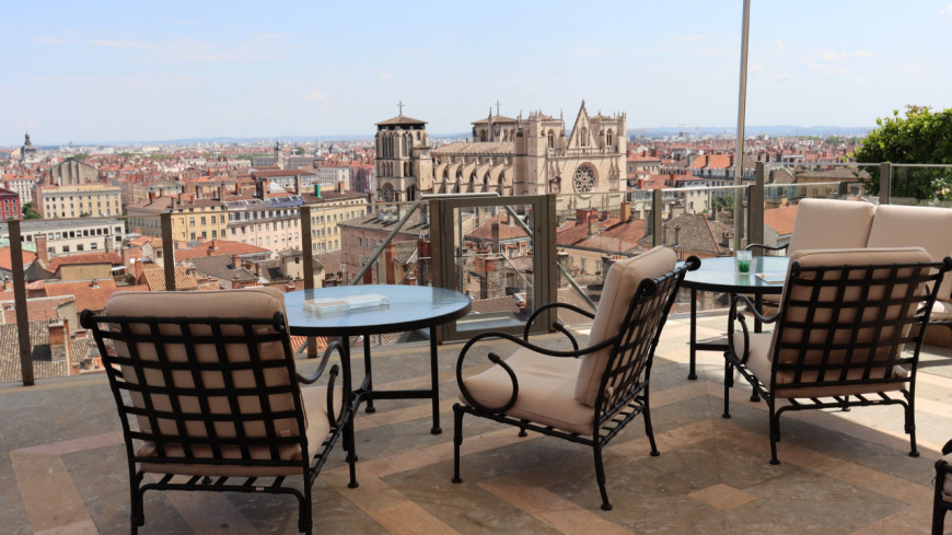 Nichée au sommet du musée éponyme dans le quartier du Vieux-Lyon, cette terrasse verdoyante est l’une des plus secrètes de la ville. Le café Gadagne est le lieu idéal pour profiter d’un vrai bol d’air frais en plein cœur de Lyon. Une carte raffinée, dans l’assiette, des produits de saison, une cuisine inventive et des pâtisseries maison. Le plat du jour est à 13,50€, et le menu (entrée plat dessert) à 29,50€. Les week-ends, de septembre à juillet, le restaurant propose des brunchs à volonté : 30€/adulte et 15€ pour les enfants jusqu’à 11 ans. Deux services : 11h30/13h15 - 13h45/15h. Réservations vivement conseillées !