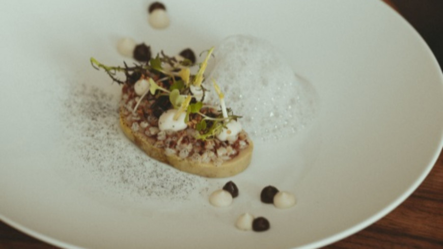 A Vaux-en-Beaujolais, le restaurant gastronomique et ex-étoilé L'Auberge de Clochemerle a imaginé une recette originale que le chef Romain Barthe partage avec nous : Coulis de Chou-fleur, écume de sésame, gel de sésame, sarrasin et foie gras.