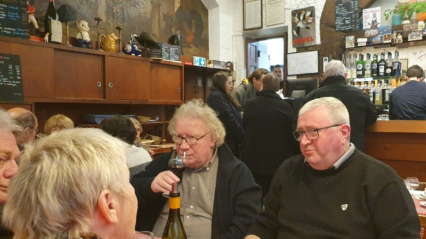 L'enseigne de l'établissement ferait croire que l'on est dans un lieu poussiéreux et triste. Que non, l'ambiance est au rendez-vous, car les tables se touchent et se tutoient, difficile de s'en extraire quand on est assis.
