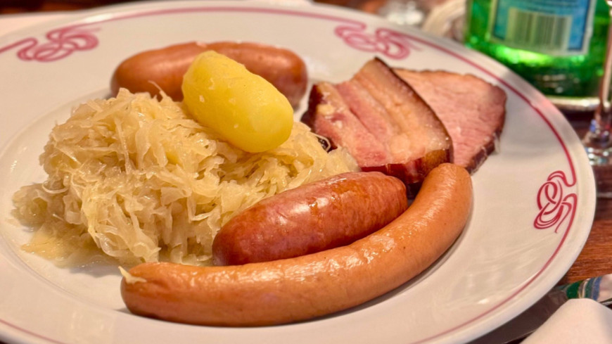 A la carte, des plats difficiles à prononcer avec l'accent lyonnais : harengs matjes, presskopf, strudel et kougloff. Davantage de repères avec une truite fumée, une choucroute aux poissons, une matelote d'ombre chevalier ou une mijotée de porc au pinot noir. On attendra pour l'iconique Baeckeoffe.